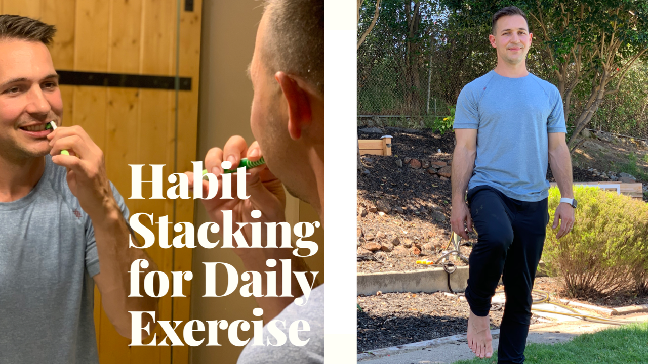 For our purpose a habit will be anything you do on a daily basis such as: making coffee/tea, going to the bathroom (yes this counts!), putting on your shoes, brushing your teeth and anything else like these. You get the point. Now, we take something from the strength, mobility or balance category and attach it to this. As an example, every time you go pee, you do push ups. Every time you brush your teeth, you balance.